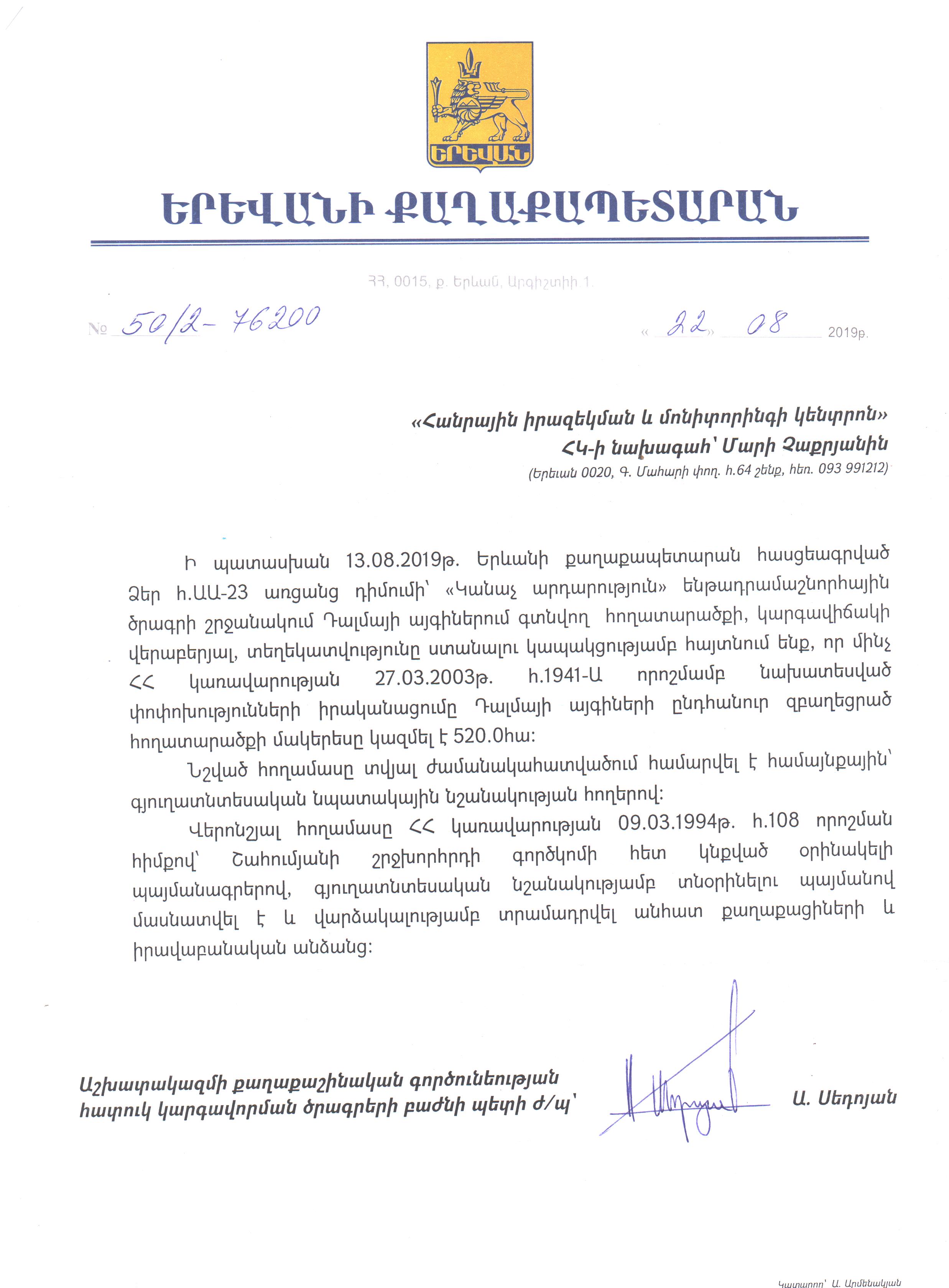 Պատասխանի ամսաթիվ 22.08.2019