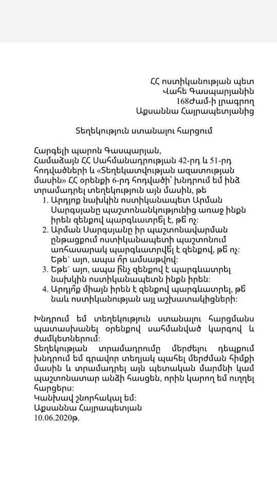 Հարցման ամսաթիվը 10.06.2020